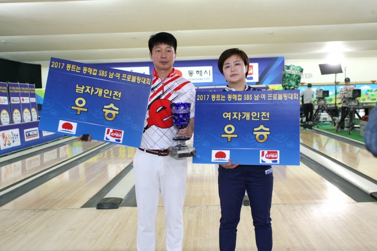 오늘(27일) 강원도 동해에 위치한 영풍볼링경기장에서 열린 ‘2017 동트는 동해컵 SBS 남‧여 프로볼링대회’에서 서정환(퍼펙트코리아‧16기)과 최현숙(삼호아마존‧6기)이 각각 남녀 우승을 차지했다.