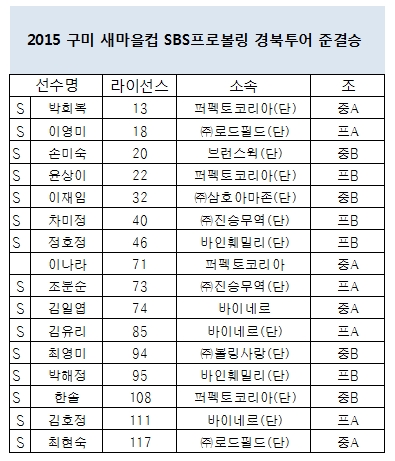 2015 구미 새마을컵 SBS프로볼링 경북투어 여자부 준결승 명단 페이지 정보 작성자 한국프로볼링 작성일 15-07-20 17:59 조회 19,762회 댓글 0건 본문 추천0 이전글2015 구미 새마을컵 SBS프로볼링 경북투어 여자 개인전 준결승 성적 다음글2015 구미 새마을컵 SBS프로볼링 경북투어 여자 단체전 2일차 성적 목록 댓글목록 0 댓글목록 등록된 댓글이 없습니다.