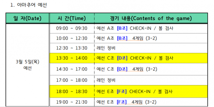 [변경 안내] 2026 퍼펙트코리아컵 프로볼링대회 아마추어 예선 타임 테이블 변경 안내 페이지 정보 작성자 한국프로볼링 작성일 26-03-04 13:08 조회 1,197회 댓글 0건 본문 원활한 경기 진행을 위해 아마추어 예선 C/D조, E/F조 체크인 시간이 변경 되었습니다.C/D조 E/F조 선수분들께서는 원활한 경기 진행과 주차를 위해 체크인 시간을 지켜서 도착해 주시기 바랍니다. 추천0 다음글[조배정] 2026 퍼펙트코리아컵 프로볼링대회 예선전 조배정 목록 댓글목록 0 댓글목록 등록된 댓글이 없습니다.