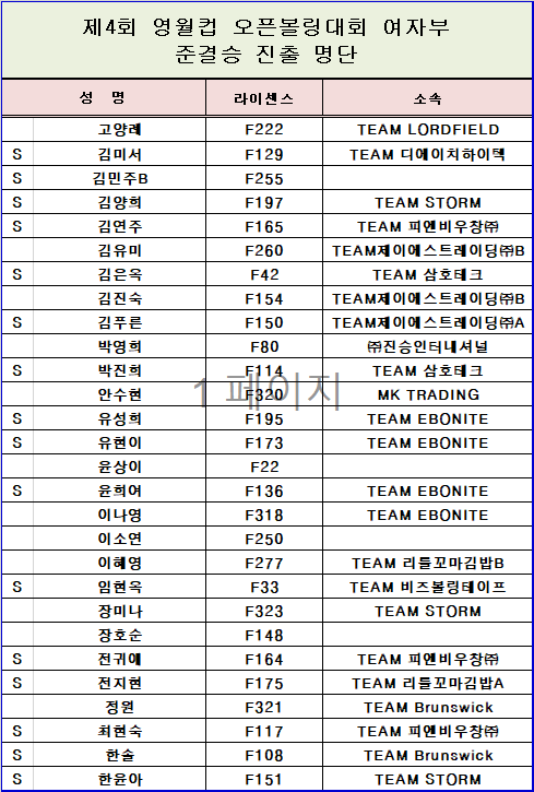 [명단] 제4회 영월컵 오픈볼링대회 여자부 준결승 진출 명단 페이지 정보 작성자 한국프로볼링 작성일 25-10-22 00:11 조회 783회 댓글 0건 본문 제4회 영월컵 오픈볼링대회 여자부 준결승 진출 명단 추천0 이전글[대진표] 제4회 영월컵 오픈볼링대회 TV파이널 대진표 다음글[예선접수] 제10회 상주 곶감컵 오픈볼링대회 예선전 접수 링크 공지 목록 댓글목록 0 댓글목록 등록된 댓글이 없습니다.